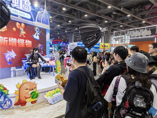 本次《彩虹岛》展台最大的亮点之一,便是将游戏内暑期版本的场景进行了实景还原。从踏入展区的那一刻起,玩家就仿佛穿越进了《彩虹岛》的奇幻世界。精心布置的游戏地图同款场景,成为了现场最热门的拍照打卡点,随处可见玩家们驻足拍照留念,欢声笑语不断。