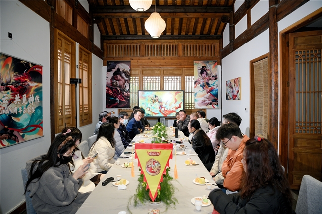 当日光渐褪,华灯初上,活动最终章——“家宴”正式开席。没有流程、没有演讲,只有满满一桌好菜和停不下来的酒杯。帮派里的趣事、副本开荒的糗事、当年PK的辉煌时刻……所有游戏里的记忆,就着美食美酒,都变成了现场爽朗的笑声和感慨。这顿宴席,吃的不是排场,是十九年沉淀下来的情义。